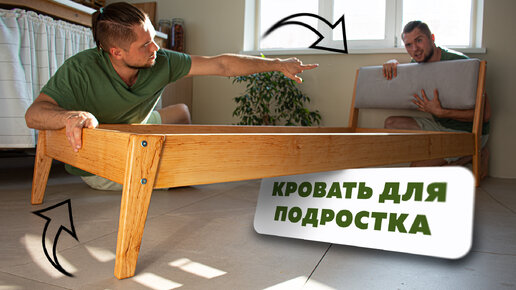 Кровать для подростка из массива с мягким изголовьем.