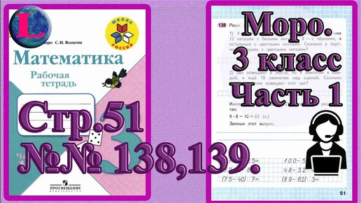 Стр 51 Моро Математика 3 класс рабочая тетрадь 1 часть Моро задания 138 139 страница 51