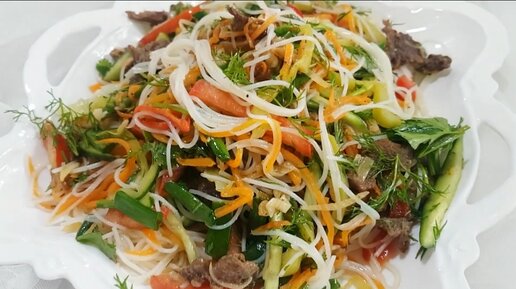 Этот салат бесподобно! Готовлю через день, не надоедает. Фунчоза с овощами.