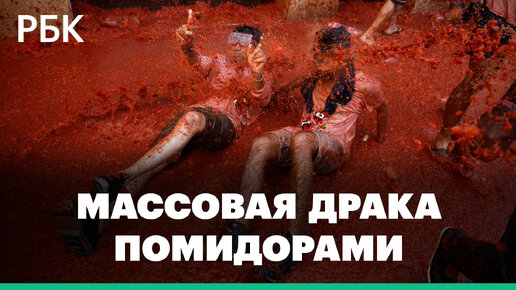 Рестлинг на куче помидоров — как валяют друг друга в раздавленных томатах на фестивале Томатина в Испании
