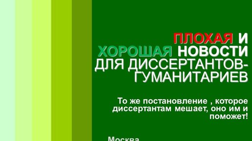 ПЛОХАЯ И ХОРОШАЯ НОВОСТИ ДЛЯ ДИССЕРТАНТОВ-ГУМАНИТАРИЕВ