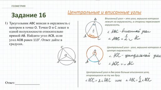 Центральные и вписанные углы. Разбор задания №16 ОГЭ