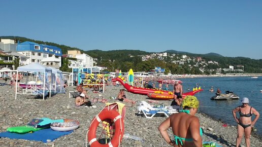 Пляж Чайка Лазаревское. Кафе Кураж. Лазаревское Сочи. Последний день уходящего лета - жара продолжается. 31 августа 2022 год