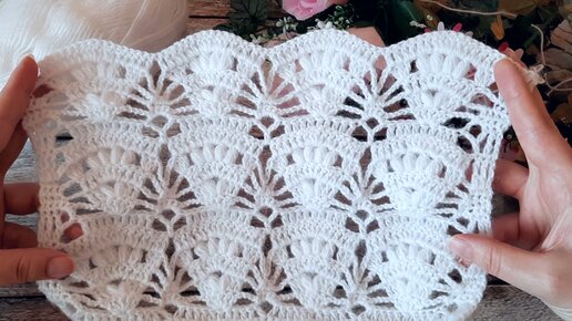 Редкостный, ажурный узор для вязания палантина, детского пледа и не только. Вяжем крючком.