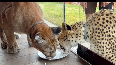Тарелка дружбы - Пума Месси и гепард Герда едят с одной тарелки
