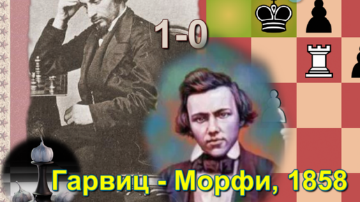 Эпатажный Гарвиц, кое-как выиграв белыми эту первую партию "парижского" матча 1858 года у Пола Морфи, очень загордился и устроил шоу