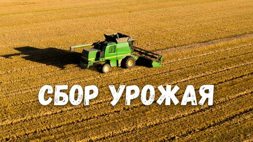 Комбайн в поле. Сбор урожай пшеницы / Россия с квадрокоптера