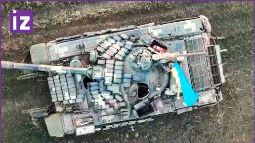 Момент уничтожения украинского танка Т-72АВ, брошенного под огнем ВС РФ