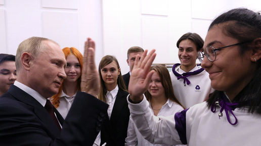 Президент спел гимн вместе со школьниками со всей России