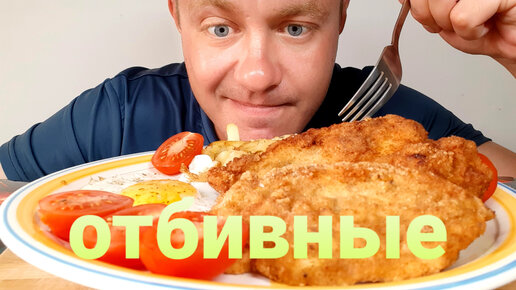 МУКБАНГ. ОБЖОР. ОТБИВНЫЕ КУРИНЫЕ + ЖАРЕНАЯ КАРТОХА + ЯИШЕНКА.