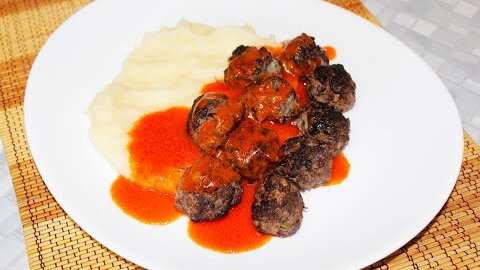 Фрикадельки из фарша северного оленя в томатном соусе