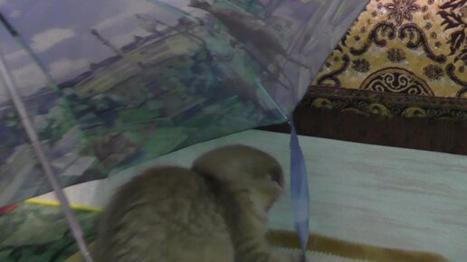 Кошки играют зонтом