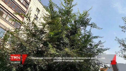 Тюменцы просят убрать рухнувшее несколько дней назад дерево в центре города