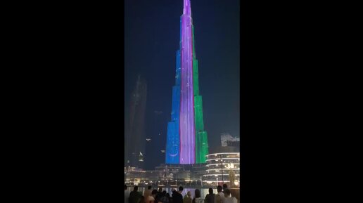 Здание Бурдж-Халифа в Дубаи окрасили в цвета флага Узбекистана