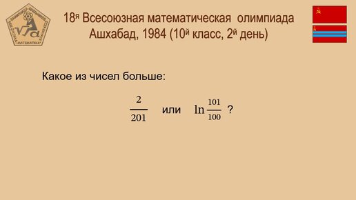 Какое из чисел больше: 2/101 или ln(101/100) ?