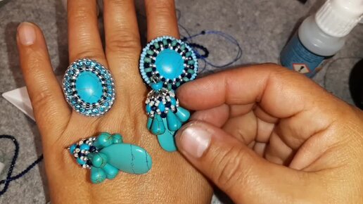 Серьги, два кольца из говлита под бирюзу. Что получилось.