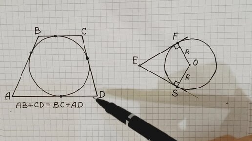 Разбираемся почему суммы противоположных сторон четырёхугольника, в который можно вписать окружность, равны.