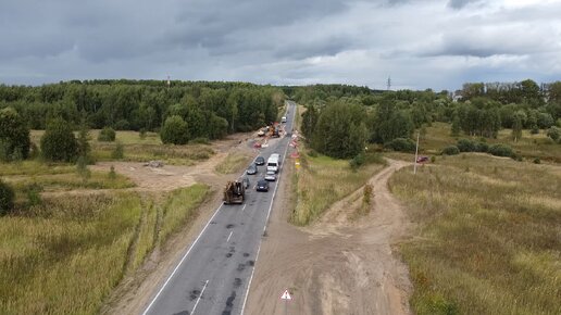 Ремонт дренажного канала почти завершён! Ремонтники уже провели часть работы и пустили транспорт по выложенному вновь асфальту на дороге Вязники - Никологоры вблизи п.Лосево