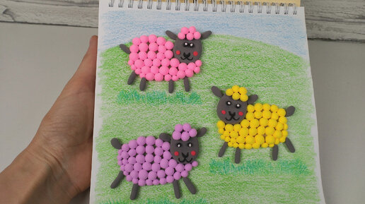 Волшебные овечки) Занятие для самых маленьких. Мелки + волшебный пластилин.