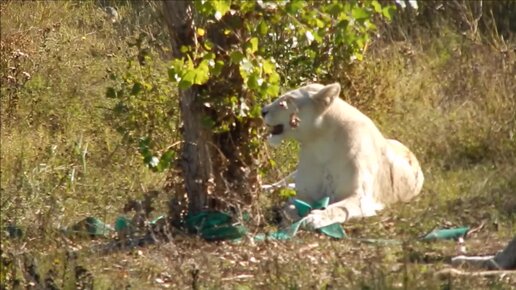 ДЖУНА- ЭТА ЛЬВИЦА С ЛЕНТОЙ КРУЧЕ КАБАЕВОЙ. ЛЕВ ПОКОРЁН