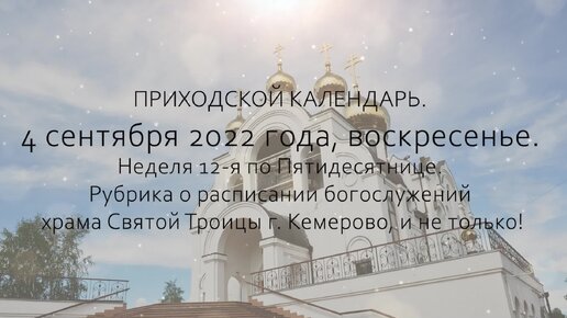 ЖИВОЙ КАЛЕНДАРЬ. 4 сентября 2022 года, воскресенье. Неделя 12-я по Пятидесятнице.