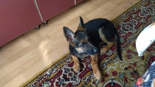 Немецкая овчарка.Щенок 3 месяца.Знакомство с кошкой.