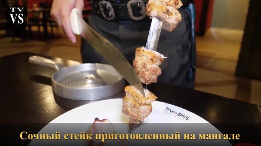Сочный стейк по бразильскому рецепту, приготовленный на мангале шеф-поваром из Кореи.