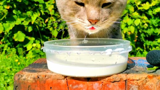 Кот пьет молочко