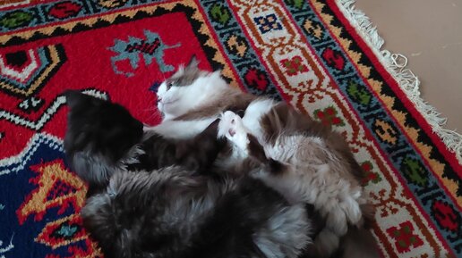 ДРАКА ТРЕХ КОТОВ!!! Шотландец напал на Мейн-куна защищая другого кота!))). Ну и так играются котики))