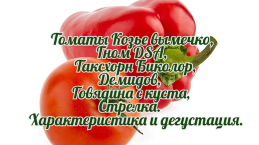 Томаты Козье вымечко, Гном DSA, Таксхорн Биколор, Демидов, Говядина с куста, Стрелка. Характеристика и дегустация.