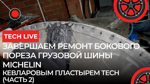 Завершаем ремонт БОКОВОГО пореза грузовой шины MICHELIN кевларовым пластырем TECH (Часть 2)