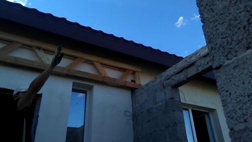 Устройство козырька на пристройку из керамзитобетонных блоков.