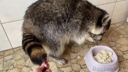 Енот Гора ест кашу за двоих, а Зефирка хочет спать