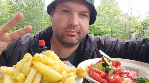 МУКБАНГ ЖАРЕНАЯ КАРТОШКА/ОБЖОР САЛАТ овощной
