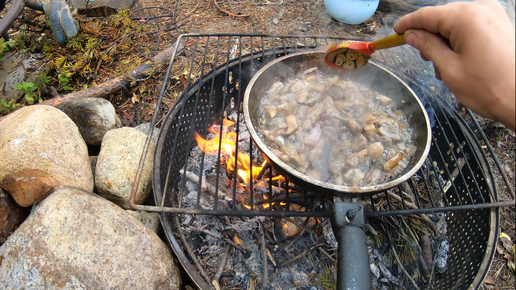 Тундра! Жареные грибы на костре в лесу ! 03.09.2022 года! простой рецепт вкусных грибов со сметаной!