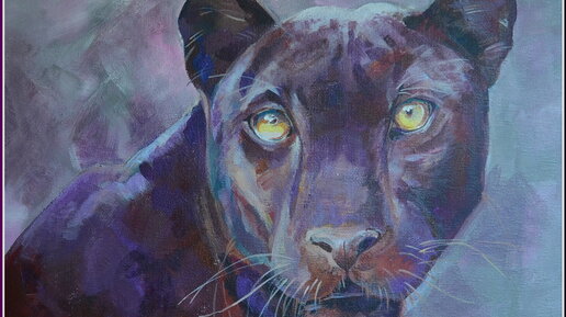 Как нарисовать пантеру. Черный ягуар. Черный леопард. Багира. Акрил