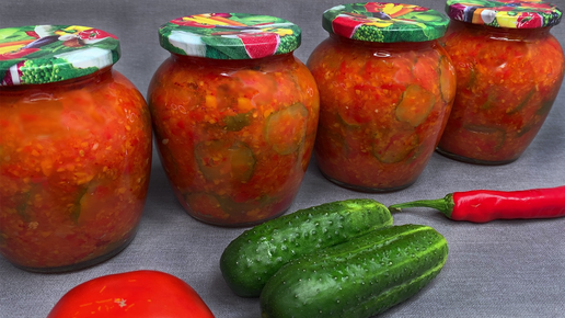 Вкусное лечо из огурцов в томатной заливке: выглядит аппетитно и съедается с удовольствием (хранится без холодильника)