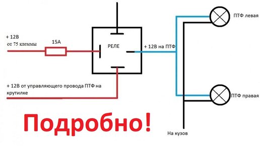 Схема установки противотуманных фар. Как работает реле? ПОДРОБНО!