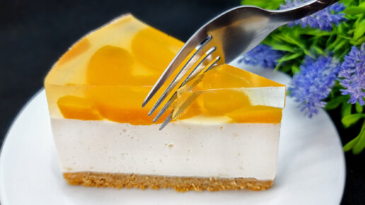 Желейный торт "Персики на снегу" к чаю и не только: простые идеи десертов без выпечки #232