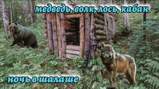 К шалашу на солонце пришли: медведь, лось, волк, кабан - за одну ночь!