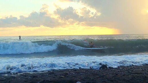Бесстрашные сапсерферы плавают в шторм в Черном море
