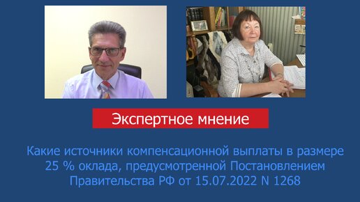 Какие источники компенсационной выплаты в размере 25 процентов оклада, предусмотренной Постановлением Правительства РФ от 15.07.2022 N 1268?