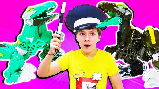 Робот Трансформер Ректор - полицейский! Тушим пожар и находим динозавра! Видео игры в полицейских