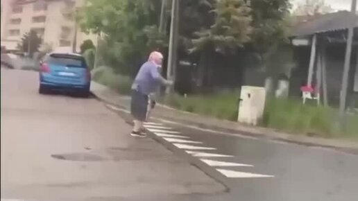 Ничего необычного, просто бабуля несёт свой Экскалибур. Почему бы и да?