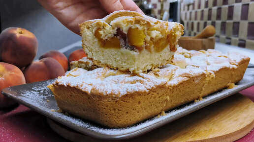 Простое тесто за 5 минут и самая простая фруктовая начинка. Изумительно красивый песочный пирог (вариант с персиками)