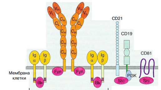 В-клеточный рецептор. Иммунология. Строение клеточного рецептора лимфоцита.