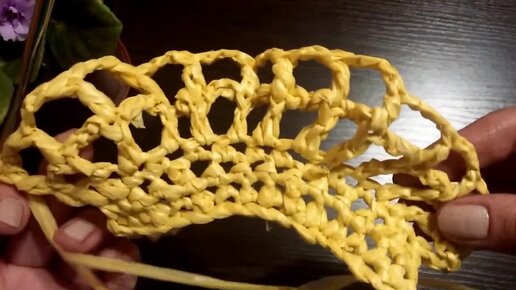 Вяжем Авоську. Простым узором. Пряжа из мусорных пакетов.