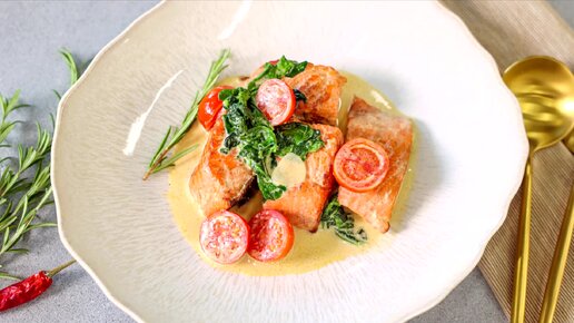 Нерка в сливочно-шпинатном соусе — шедевр к праздничному столу и не только