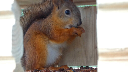 Я в домике! Белочка удобно устроилась и грызет кедровые орешки!
