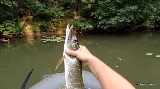 Поставил перемет из бутылок. Щука на живца и воблер на заросшей по берегам малой реке.